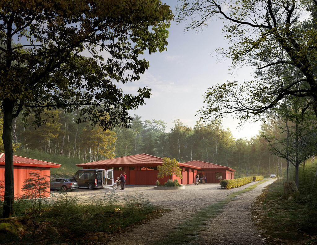 Halmstads kommun bygger ett boende för personer med autism. Man har identifierat en plats med ett stort mått av avskildhet och med goda förutsättningar för ett bra boende. Tomten ligger i byns utkant, alldeles för sig själv på gränsen mellan skog och åker. Här har vi ritat bostäder med mycket höga krav på avskildhet, ett minimum av insyn och intryck samt med en välfungerande arbetsmiljö för personalen. Samtidigt har vi haft fokus på att skapa höga boendekvaliteter som skapar trivsel över lång tid.