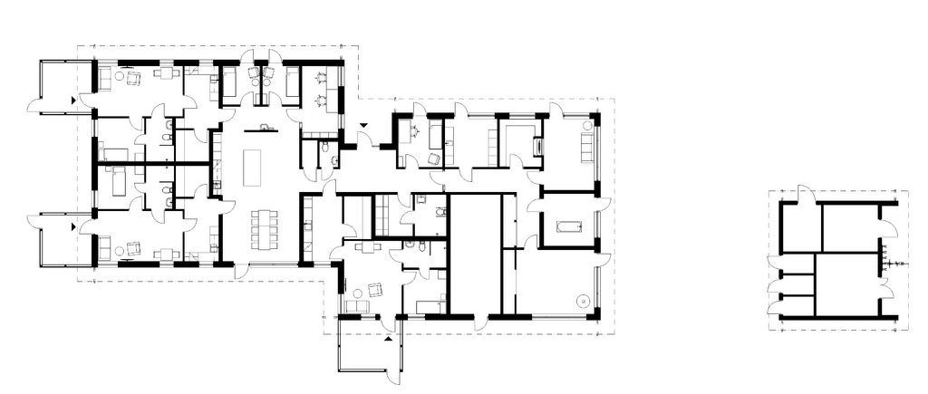På en lantligt belägen och väl skyddad plats har vi ritat ett boende för personer med stort behov av avskildhet och stöd i vardagen. Doft av skog och utsikt över åkrar ger lugn och ro.
