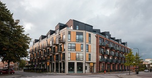 Med ett starkt formspråk, modernt men ändå sammanknutet med arkitekturen hos den äldre bebyggelsen runt om, ligger bostadsprojektet Götaporten på Guldmyntsgatan i Högsbo, Göteborg. I ett område där det inte byggts på länge står nu tre ståtliga bostadsrättshus med 95 små och välplanerade bostäder klara. Tack vare det nya, håller området på att väckas till ett nytt, spännande liv.