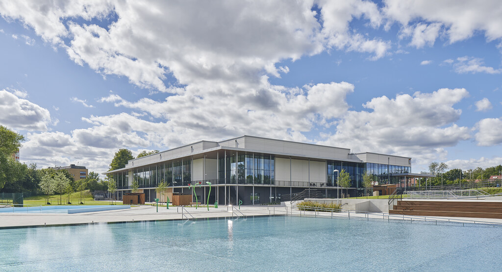 Västerås nya badhus har som mål att vara en simhall som passar alla badgäster, oavsett bakgrund, simvana och fysisk förmåga. Här finns bassänger för tävling, simhopp, rehabilitering och undervisning, och en avdelning för gym. Formspråket är modernistiskt, strikt och stilrent med stora skärmtak, ljusa fasader och varma inslag av trä. Det är en inbjudande simhall där generösa glaspartier förenar bassängerna med den omgivande naturen och Mälaren. Dessutom har utomhusbadet byggts om och adderats med en barnbassäng och tillhörande splash-yta samt två nya rutschbanor.