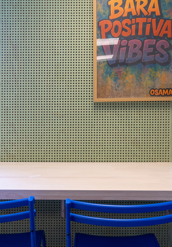 I Möllegårdens ombyggnad är hållbarhet lågmält men kraftfull vad gäller cirkuläritet. Genom att förstå byggnadernas historik och sammanhang kunde vi göra minimala ingrepp som gav maximal effekt – något som avspeglas i projektets låga klimatavtryck på 126 kg CO₂e/m² BTA. Återbruk har varit en strategi genomgående, med återanvänd lös inredning, undertak och dörrar. Linoljebaserad färg och träfiberisolering bakom akustikpaneler bidrar till minskad klimatpåverkan. Projektet visar hur återbruk kan minska CO₂-utsläpp och befintlig infrastruktur har nyttjats för lägre energiåtgång. Socialt innebär utvecklingen av platsen flera fördelar för både verksamhet och kommun. Genom egna mätverktyg, som Grönt Index, har hållbarhetsarbetet följts upp och gett goda resultat tack vare återbruket.