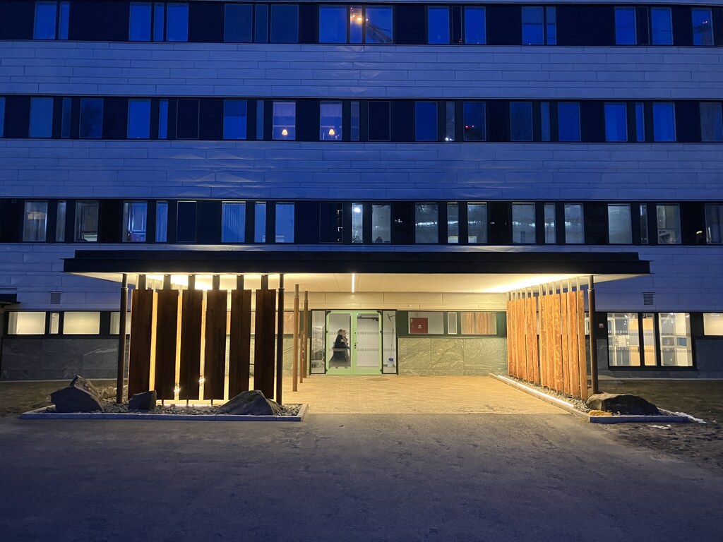 Den nya entrén till bårhuset är en del av upprustningen av Centralkliniken. Entrén har utformats med omsorg för de anhöriga som besöker bårhuset.