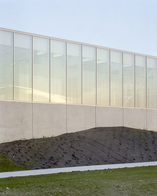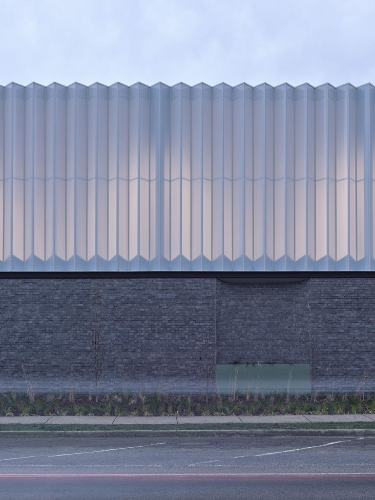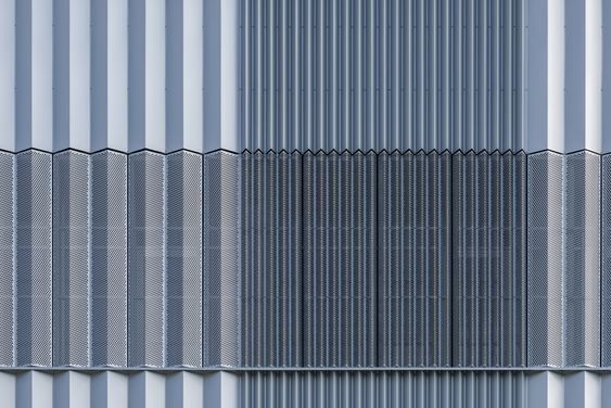 Det första testet var att applicera samma formspråk och materialitet som på det befintliga verket, en ljus plåt som kunde monteras horisontellt eller vertikalt. Detaljeringen är inte synlig från långt avstånd utan anläggningen i sin helhet upplevs än mer storskalig med ett sammanhållet material och formspråk.